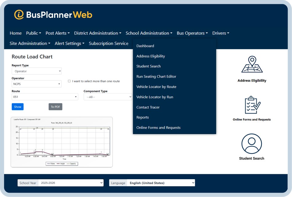 Gain access to real-time information, respond faster, and keep operations running smoothly with our web-based student transportation information portal.